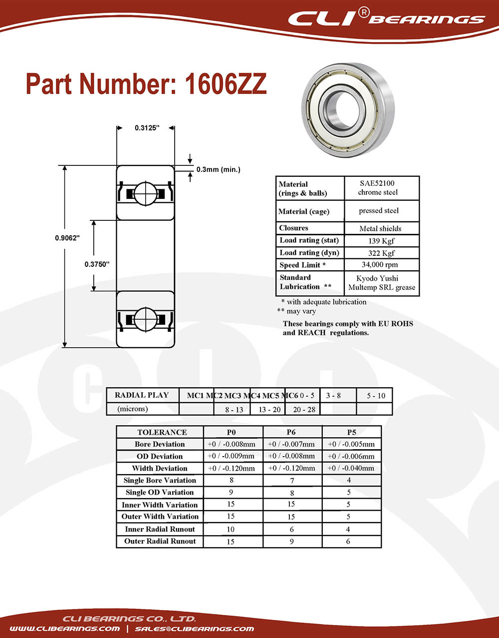 | Bore Dia Tolerance | -0.008mm to 0 |