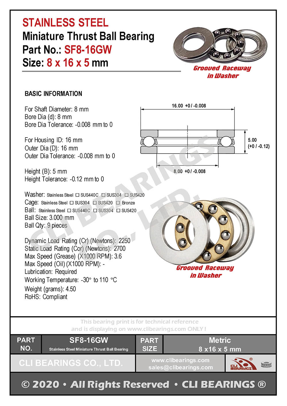 | Bearing Type | Miniature Thrust Ball Bearing |