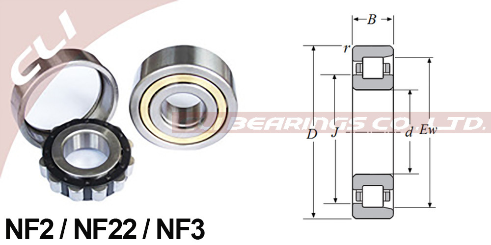 * NUP - Two solid ribs on the outer ring, a solid rib on the inner ring and a loose rib washer make possible the use as a locating bearing and an axial guidance in both directions.